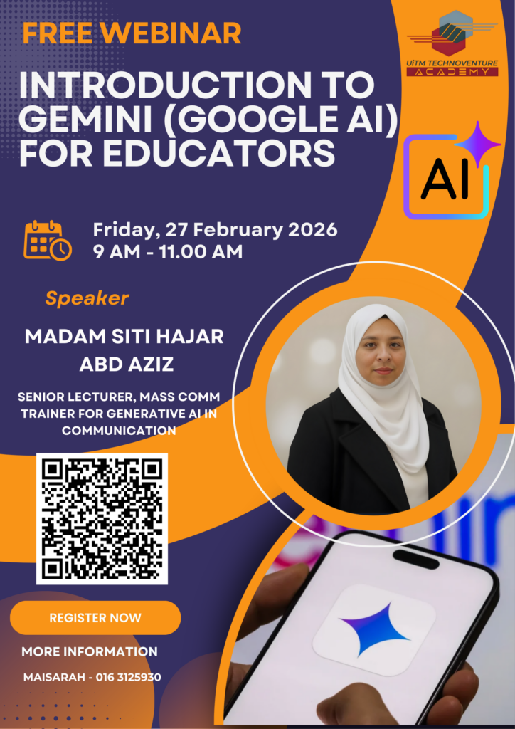 By the end of the webinar, participants will understand how Google Gemini works and be able to use it to assist daily educational tasks such as preparing teaching materials, drafting notes, generating ideas, and improving communication with students. Participants will also gain awareness of ethical and responsible AI usage and know practical ways to integrate AI into teaching and learning activities.